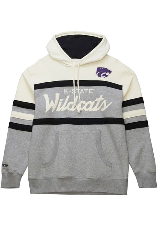 Make a bold statement in this K-State Wildcats Grey Head Coach Vintage Logo Long Sleeve Fashion Hood! This K-State Wildcats Long Sleeve Fashion Hood features a self-fabric embroidered team name at center front with embroidered team logo. Fear The Cats!