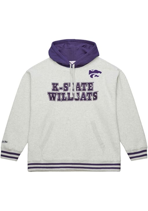 Size Chart for Mens K-State Wildcats Grey Mitchell and Ness Off Season Fleece Long Sleeve Fashion Hood