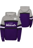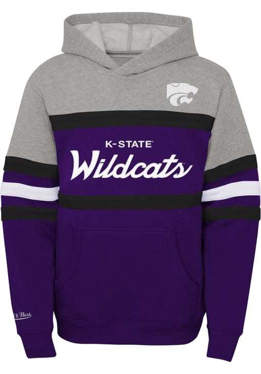 Product Details Product Details Soft hand screen print team graphicDirect embroidered team logo1x1 ribbed cuffs and hemContrasting team color blocked sleeves and bodyFront pouch pocketPerfect for any young sports fan!60% COTTON/ 40% POLYESTERImport, Domestic Officially Licensed Go to gamedays in style in this Youth Purple K-State Wildcats Mitchell and Ness Head Coach Hooded Sweatshirt! This Wildcats Hoodie features a direct embroidery team graphic that will be sure to keep you warm and cozy.