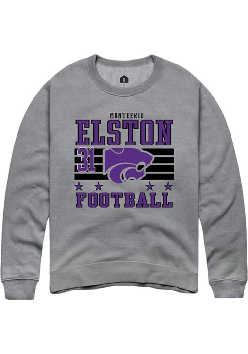 Support your K-State Wildcats and favorite Monterrio Elston in this K-State Wildcats Mens Grey Football NIL Striped Player Crew. This Crew Sweatshirt features a NIL graphic, and is sure to stand out in the stadium. Perfect to wear on game day or any day!