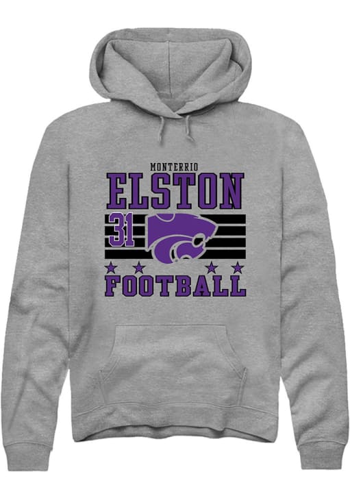 Embrace your Wildcats pride and showcase your team spirit with confidence in this K-State Wildcats Long Sleeve Hoodie! Stay warm and stylish with the K-State Wildcats Mens Grey Football NIL Striped Hooded Sweatshirt. Designed with custom graphic with player's name and number, this Wildcats Long Sleeve Hoodie is a must-have for dedicated fans.