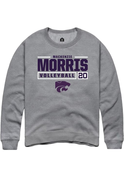 Mackenzie Morris Rally Mens Graphite K-State Wildcats NIL Stacked Box Crew Sweatshirt