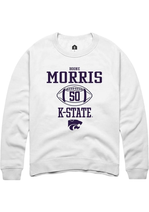 Boone Morris Rally Mens White K-State Wildcats NIL Sport Icon Crew Sweatshirt