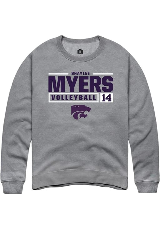 Shaylee Myers Rally Mens Graphite K-State Wildcats NIL Stacked Box Crew Sweatshirt
