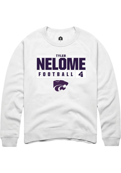 Tyler Nelome Rally Mens White K-State Wildcats NIL Stacked Box Crew Sweatshirt