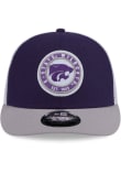 Product Details Product Details New Era 3T Circular LP 9FIFTY TruckerFront embroidered team logoTeam color crown and contrast visorTrucker mesh on side and back panelsSide New Era flagPlastic snap closureCotton/Poly BlendCurved BillLow CrownStructuredWipe clean with cloth or cleaning kitImported Officially Licensed This Purple Wildcats Adjustable Hat features a team logo embroidered on front.