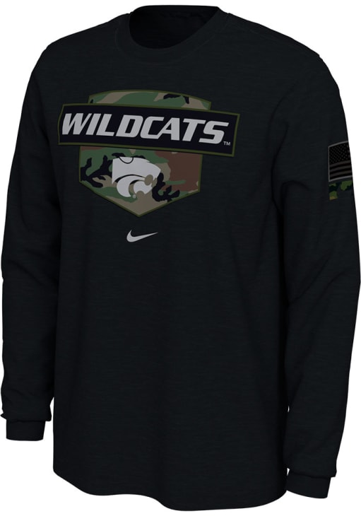 Show your K-State Wildcats spirit in this K-State Wildcats Black T Shirt! This K-State Wildcats Veterans Long Sleeve T Shirt makes a great layer for cooler nights cheering on the Wildcats. Featuring a screen print of "Wildcats" across chest with Powercat logo beneath and camo graphic across chest, this K-State Wildcats Long Sleeve Tee is an essential addition for every fan. Fear The Cats!