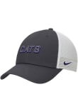 Product Details Product Details Nike - Mesh Back RiseTeam logo on frontMesh backingAdjustable closureNike swoosh on left hand sideCotton Poly BlendCurved BillHigh CrownStructuredWipe clean with cloth or cleaning kitImported Officially Licensed This Charcoal Wildcats Adjustable Hat features a front embroidered team mascot wordmark.