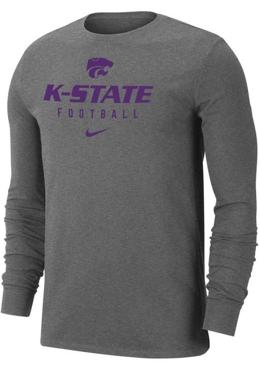 Show your K-State Wildcats spirit in this K-State Wildcats Grey T Shirt! This K-State Wildcats Team Issue Football Long Sleeve T Shirt makes a great layer for cooler nights cheering on the Wildcats. Featuring a screen print team issue Football graphic on front chest, this K-State Wildcats Long Sleeve Tee is an essential addition for every fan. Fear The Cats!