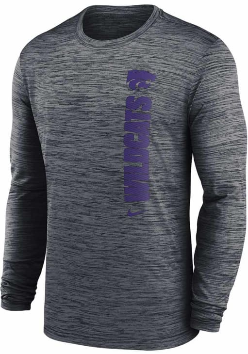 Make a bold statement in this K-State Wildcats Grey Team Issue Velocity Long Sleeve T-Shirt! This K-State Wildcats Long Sleeve Tee features a screen print seasonal team issue graphic with momentum stripe pattern on left chest. Fear The Cats!