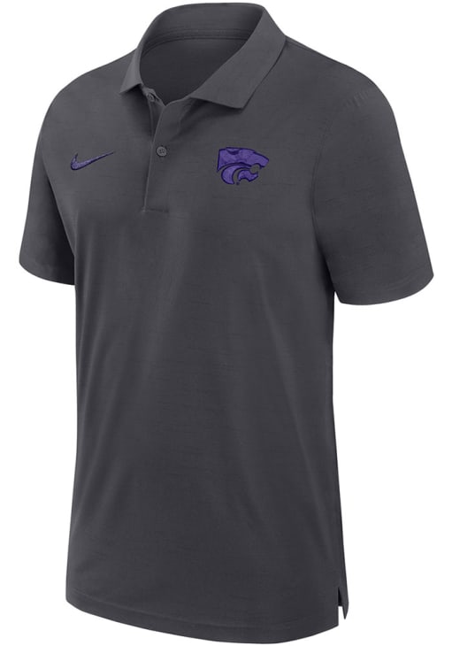Enhance your professional style with this striking Mens Anthracite Short Sleeve Polo Shirt! Showcase your team pride among colleagues with this exceptional K-State Wildcats Anthracite Sideline DriFIT Gameday Woven Short Sleeve Polo. Stand out and make a statement in this K-State Wildcats Short Sleeve Polo, featuring a embroidered team graphic on left chest that adds a touch of distinction to your look.