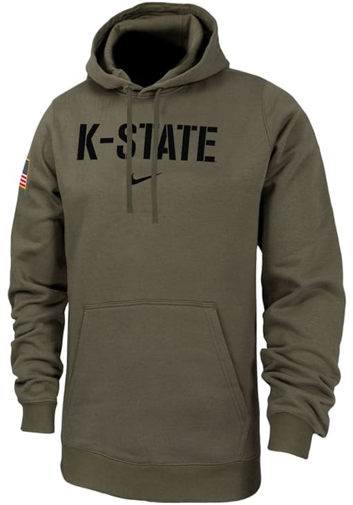 Embrace your Wildcats pride and showcase your team spirit with confidence in this K-State Wildcats Long Sleeve Hoodie! Stay warm and stylish with the K-State Wildcats Mens Olive Military Hooded Sweatshirt. Designed with screenprint of team name on front with USA flag on left shoulder, this Wildcats Long Sleeve Hoodie is a must-have for dedicated fans.