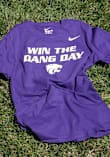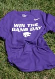 Display your team spirit with this remarkable K-State Wildcats Purple Win the Dang Day Short Sleeve T Shirt! The K-State Wildcats Short Sleeve Tee showcases a screen print of "Win the Dang Day" with Powercat logo across chest that truly sets it apart. Stand out from the crowd and proudly declare your allegiance to the Wildcats with this exceptional Purple K-State Wildcats T Shirt. Fear The Cats!