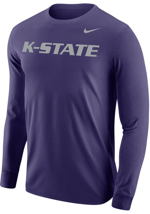 Show your K-State Wildcats spirit in this K-State Wildcats Purple T Shirt! This K-State Wildcats Wordmark Long Sleeve T Shirt makes a great layer for cooler nights cheering on the Wildcats. Featuring a screen print of K-State wordmark on center chest, this K-State Wildcats Long Sleeve Tee is an essential addition for every fan. Fear The Cats!