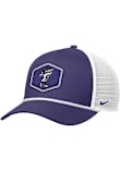 Product Details Product Details Nike Visor Rope TruckerFront embroidered team logoMatching crown and visorContrast meshbackRope accessory on visorSide Nike SwooshPolyesterCurved BillLow CrownStructuredwipe clean with cloth or cleaning kitImported Officially Licensed This Purple Wildcats Adjustable Hat features a front embroidered Willie the Wildcat playing baseball logo.