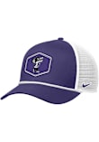 Product Details Product Details Nike Visor Rope TruckerFront embroidered team logoMatching crown and visorContrast meshbackRope accessory on visorSide Nike SwooshPolyesterCurved BillLow CrownStructuredwipe clean with cloth or cleaning kitImported Officially Licensed This Purple Wildcats Adjustable Hat features a front embroidered Willie the Wildcat playing tennis logo.