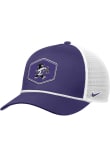 Product Details Product Details Nike Visor Rope TruckerFront embroidered team logoMatching crown and visorContrast meshbackRope accessory on visorSide Nike SwooshPolyesterCurved BillLow CrownStructuredwipe clean with cloth or cleaning kitImported Officially Licensed This Purple Wildcats Adjustable Hat features a front embroidered Willie the Wildcat playing track logo.