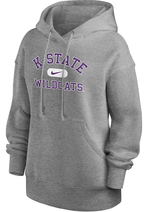 Embrace your Wildcats pride and showcase your team spirit with confidence in this K-State Wildcats Long Sleeve Hoodie! Stay warm and stylish with the K-State Wildcats Womens Grey Phoenix Fleece Hooded Sweatshirt. Designed with screen print team name on center chest, this Wildcats Long Sleeve Hoodie is a must-have for dedicated fans.