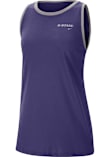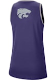 Elevate your tailgating style with this K-State Wildcats Womens Tank Top. Stay fashionable and comfortable in the refreshing Purple Tomboy Sleeveless Shirt. Discover the enticing details of this K-State Wildcats Tank Top, showcasing a left chest team wordmark and Nike swoosh, with an oversized team mascot logo on the back that's sure to impress.