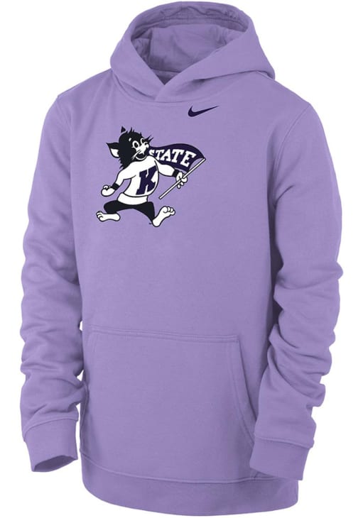 Go to gamedays in style in this Youth Lavender K-State Wildcats Nike Willie Design Hooded Sweatshirt! This Wildcats Hoodie features a screen print team graphic on center chest that will be sure to keep you warm and cozy.