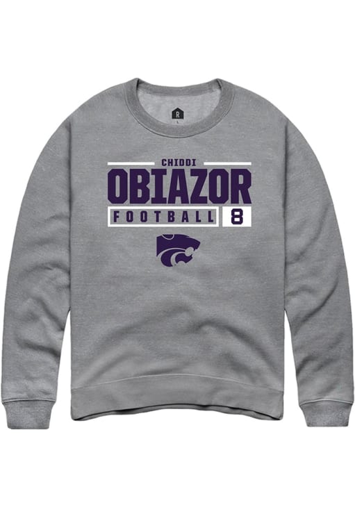 Chiddi Obiazor Rally Mens Graphite K-State Wildcats NIL Stacked Box Crew Sweatshirt