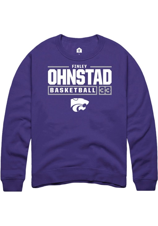 Finley Ohnstad Rally Mens Purple K-State Wildcats NIL Stacked Box Crew Sweatshirt