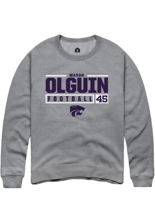 Mason Olguin Rally Mens Graphite K-State Wildcats NIL Stacked Box Crew Sweatshirt