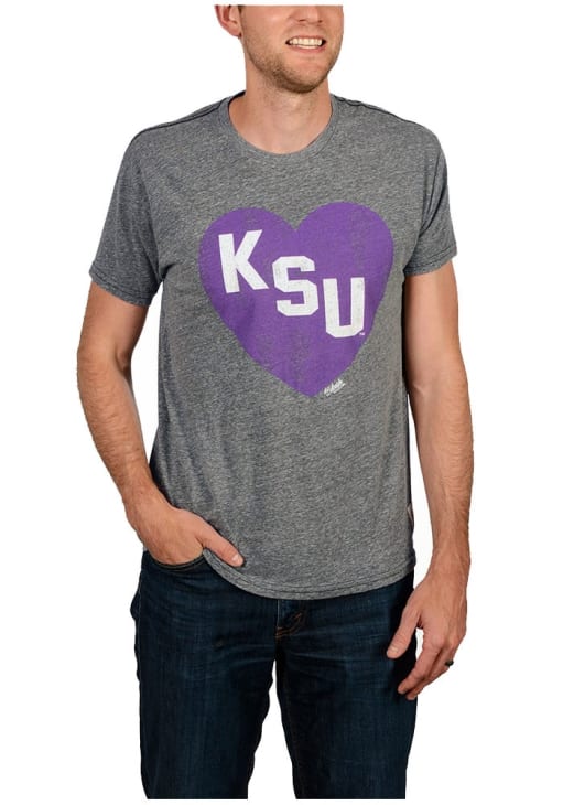 Support your K-State Wildcats in this Grey Short Sleeve Fashion Tee! This Heart Fashion T Shirt features a screen printed heart with the teams initals inside. Be ready to yell "Fear The Cats" when you wear this K-State Wildcats Short Sleeve Fashion T Shirt in your favorite stadium or on the street.