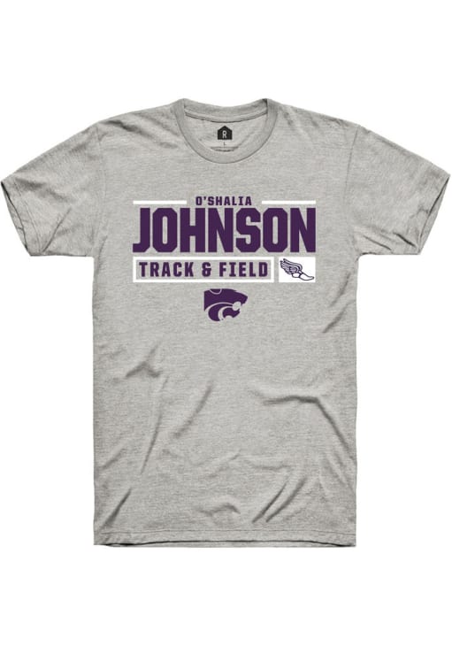 O'shalia Johnson Ash K-State Wildcats NIL Stacked Box Short Sleeve T Shirt