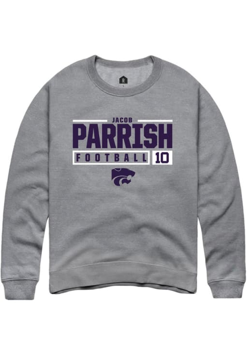 Jacob Parrish Rally Mens Graphite K-State Wildcats NIL Stacked Box Crew Sweatshirt
