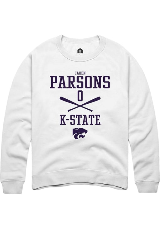 Jaden Parsons Rally Mens White K-State Wildcats NIL Sport Icon Crew Sweatshirt