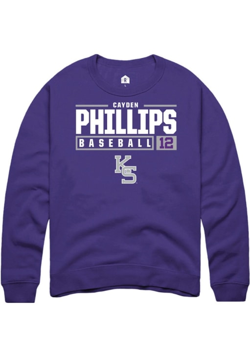 Cayden Phillips Rally Mens Purple K-State Wildcats NIL Stacked Box Crew Sweatshirt