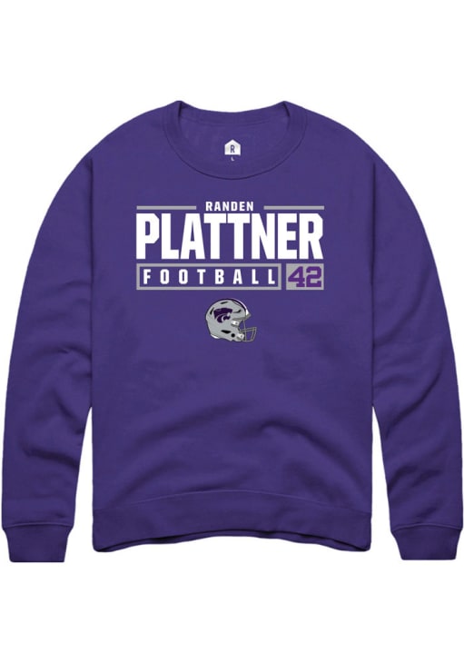 Randen Plattner Rally Mens Purple K-State Wildcats NIL Stacked Box Crew Sweatshirt