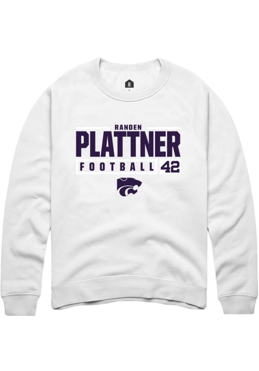 Randen Plattner Rally Mens White K-State Wildcats NIL Stacked Box Crew Sweatshirt