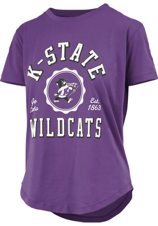 Display your team spirit with this remarkable K-State Wildcats Purple Irvine Short Sleeve T-Shirt! The K-State Wildcats Short Sleeve Tee showcases a screen print team name and logo on center front that truly sets it apart. Stand out from the crowd and proudly declare your allegiance to the Wildcats with this exceptional Purple K-State Wildcats T-Shirt. Fear The Cats!