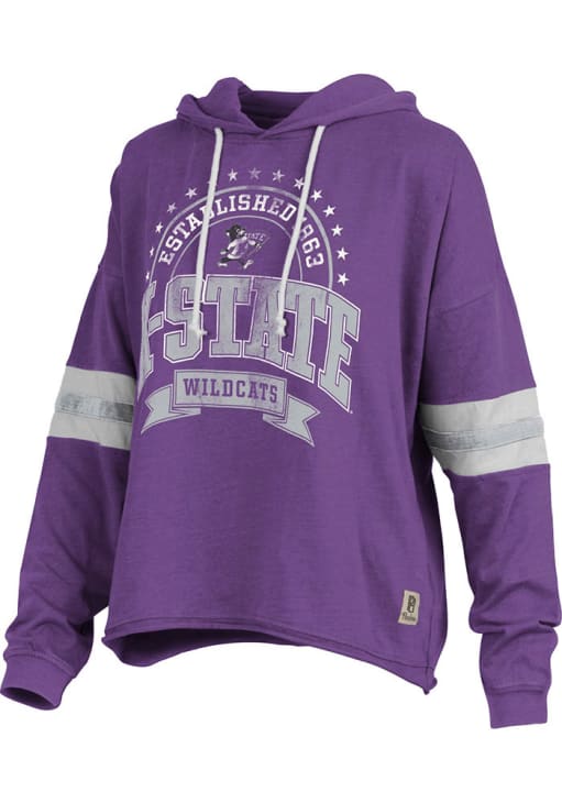 Embrace your Wildcats pride and showcase your team spirit with confidence in this K-State Wildcats Long Sleeve Hoodie! Stay warm and stylish with the K-State Wildcats Womens Purple Moonstone Hooded Sweatshirt. Designed with screen print team name and logo on center front, this Wildcats Long Sleeve Hoodie is a must-have for dedicated fans.