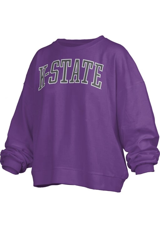 Gear up for the ultimate game day experience with this remarkable K-State WildcatsWomens Purple School Sequins Crew Sweatshirt! Designed with the true fan in mind, this Wildcats Long Sleeve Sweatshirt features a embroidered sequin team name on center chest. Stay warm and comfortable with this Womens K-State Wildcats Wildcats Crew Sweatshirt.