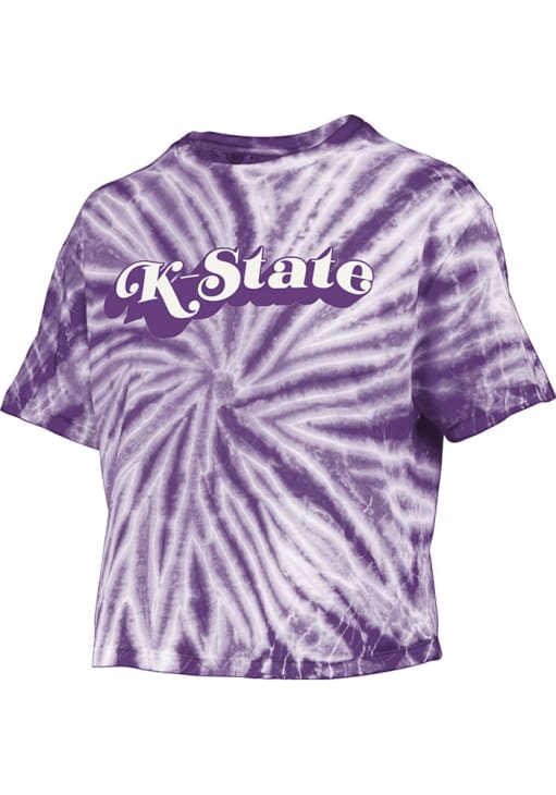 Display your team spirit with this remarkable K-State Wildcats Purple Tie Dye Campus Crop Short Sleeve T-Shirt! The K-State Wildcats Short Sleeve Tee showcases a screen print team name on center chest that truly sets it apart. Stand out from the crowd and proudly declare your allegiance to the Wildcats with this exceptional Purple K-State Wildcats T-Shirt. Fear The Cats!
