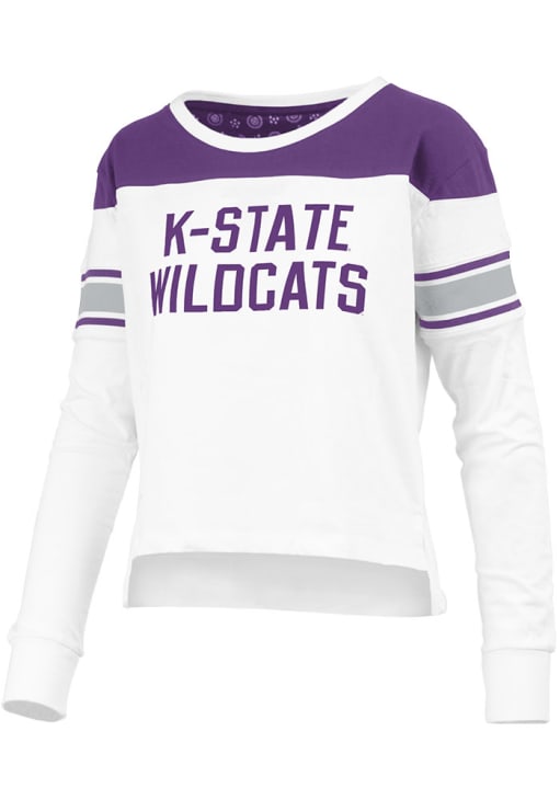 Show your K-State Wildcats spirit in this K-State Wildcats White T-Shirt! This K-State Wildcats Pieced Long Sleeve T-Shirt makes a great layer for cooler nights cheering on the Wildcats. Featuring a screen print team name on center front, this K-State Wildcats Long Sleeve LS Tee is an essential addition for every fan. Fear The Cats!