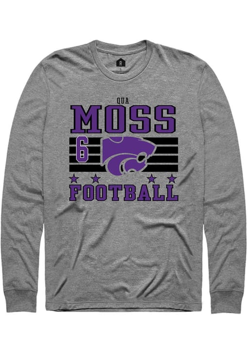 Show your K-State Wildcats spirit in this K-State Wildcats Grey T Shirt! This K-State Wildcats Football NIL Striped Long Sleeve T Shirt makes a great layer for cooler nights cheering on the Wildcats. Featuring a custom graphic with player's name and number, this K-State Wildcats Long Sleeve Tee is an essential addition for every fan. Fear The Cats!