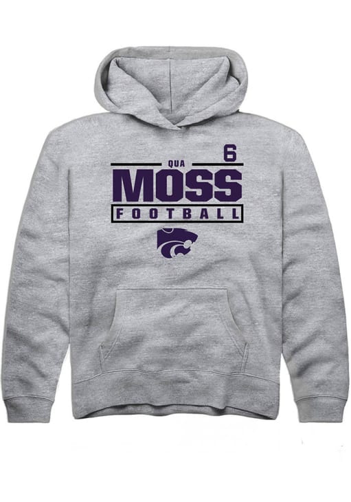 Qua Moss Rally Youth Grey K-State Wildcats NIL Stacked Box Long Sleeve Hooded Sweatshirt