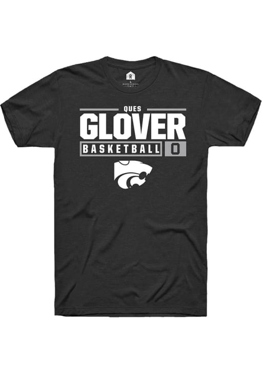 Ques Glover Black K-State Wildcats NIL Stacked Box Short Sleeve T Shirt