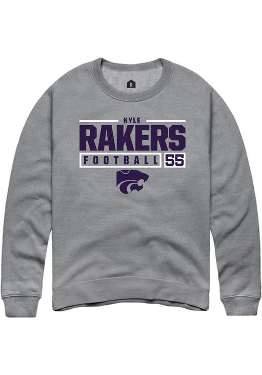 Kyle Rakers Rally Mens Graphite K-State Wildcats NIL Stacked Box Crew Sweatshirt