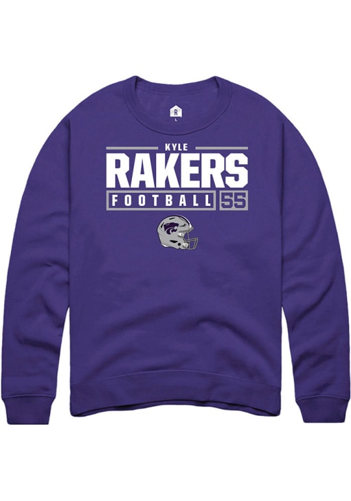 Kyle Rakers Rally Mens Purple K-State Wildcats NIL Stacked Box Crew Sweatshirt