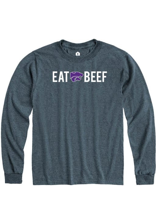 Show your K-State Wildcats spirit in this K-State Wildcats Grey T Shirt! This K-State Wildcats Eat Beef Long Sleeve T Shirt makes a great layer for cooler nights cheering on the Wildcats. Featuring a team graphic on front chest, this K-State Wildcats Long Sleeve Tee is an essential addition for every fan. Fear The Cats!