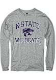 Make a bold statement in this K-State Wildcats Grey Number One Distressed Long Sleeve Fashion T Shirt! This K-State Wildcats Long Sleeve Fashion Tee features a distressed screen print of K-State arched over powercat logo with Wildcats flat below on front chest. Fear The Cats!