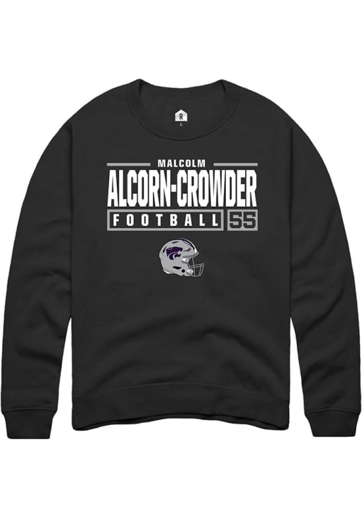 Malcolm Alcorn-Crowder Rally Mens Black K-State Wildcats NIL Stacked Box Crew Sweatshirt