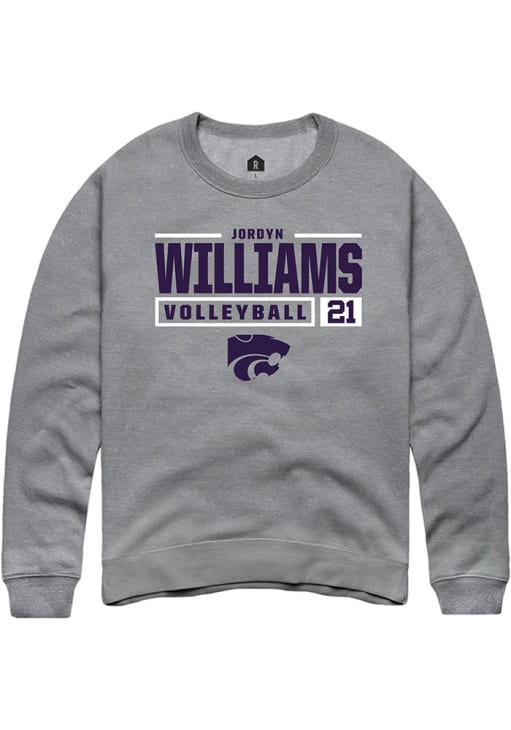 Jordyn Williams Rally Mens Graphite K-State Wildcats NIL Stacked Box Crew Sweatshirt