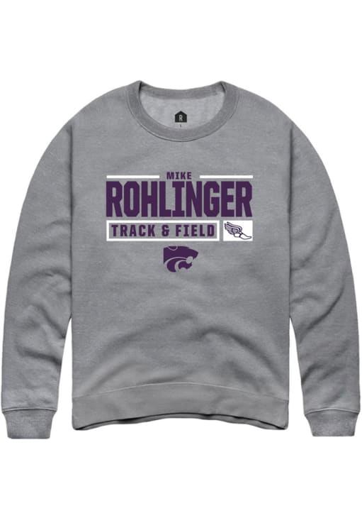 Mike Rohlinger Rally Mens Graphite K-State Wildcats NIL Stacked Box Crew Sweatshirt