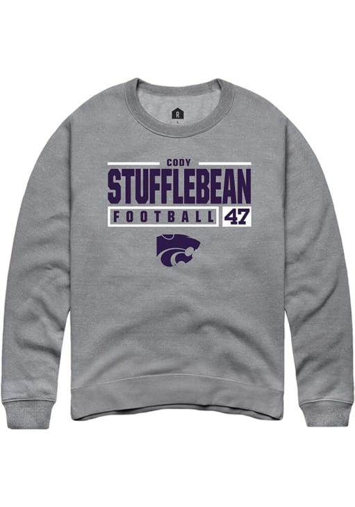 Cody Stufflebean Rally Mens Graphite K-State Wildcats NIL Stacked Box Crew Sweatshirt